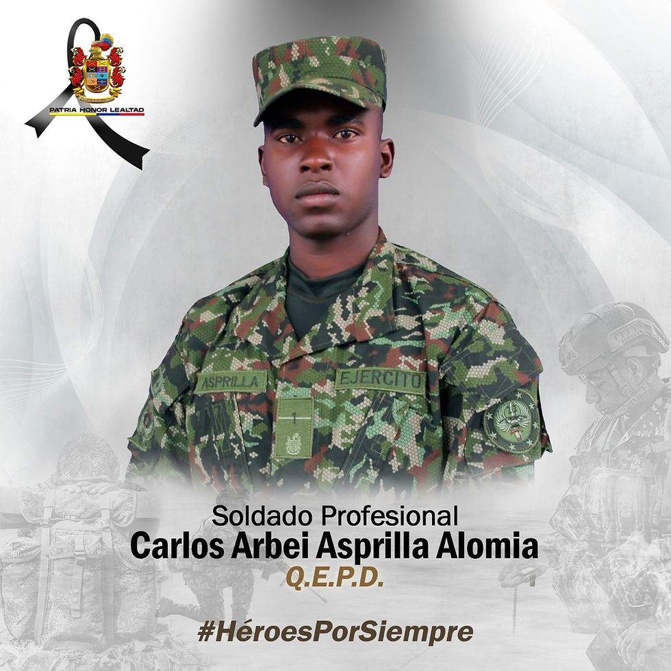 En medio del enfrentamiento, fue asesinado el soldado profesional Carlos Asprilla Alomia, quien se encontraba cumpliendo con su deber en esta zona del suroccidente colombiano.